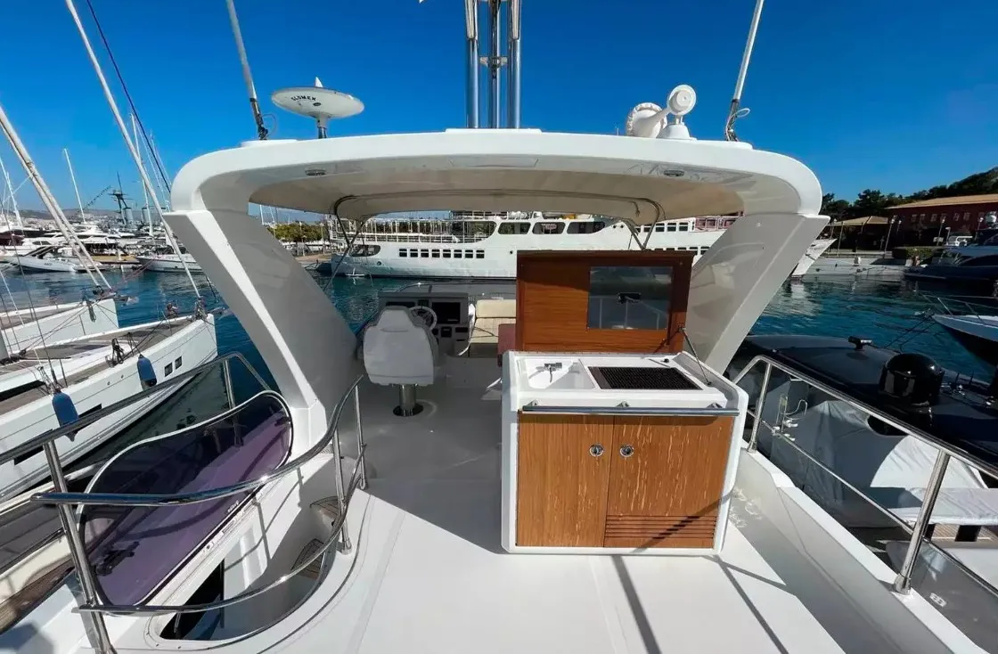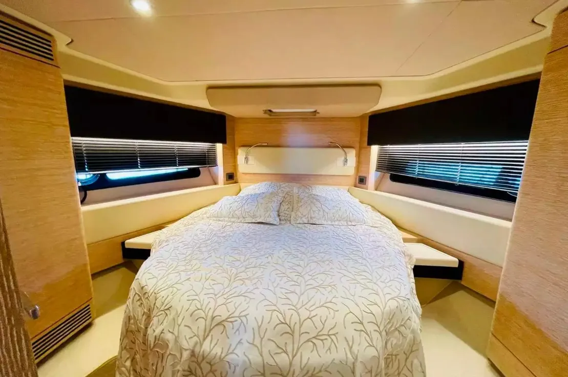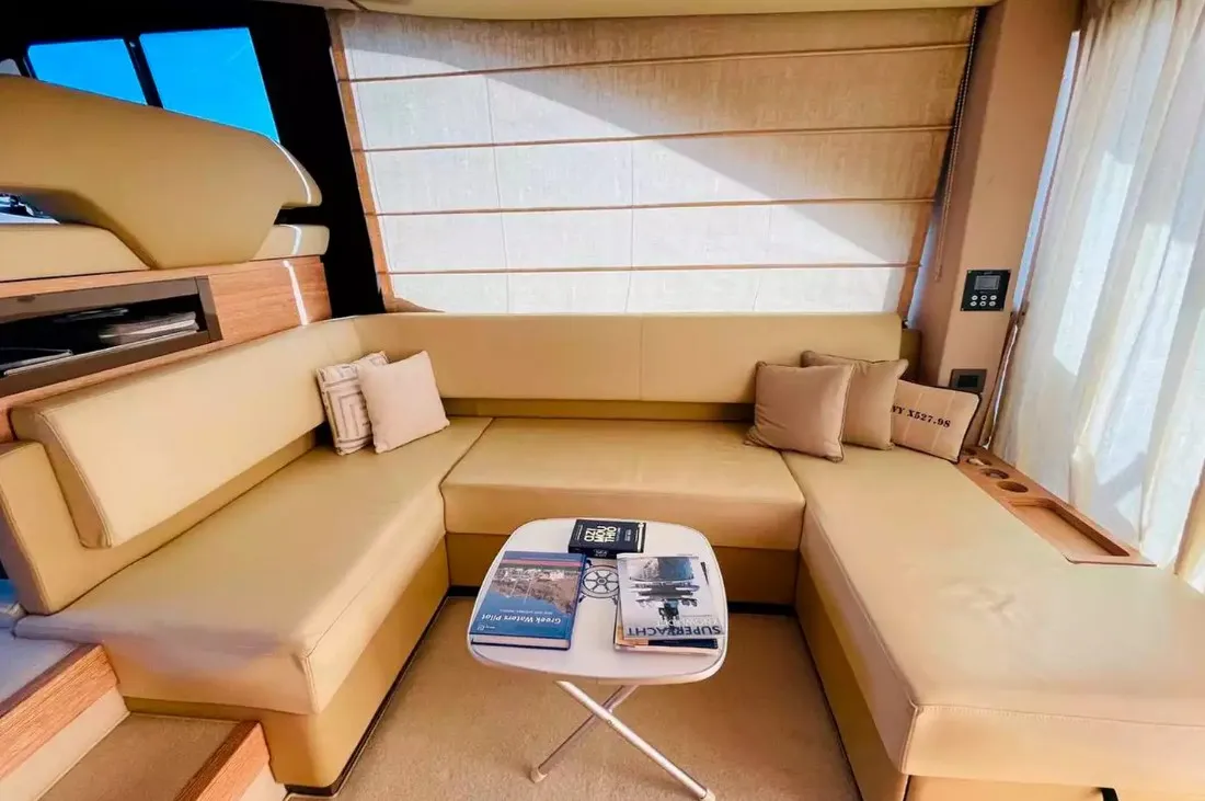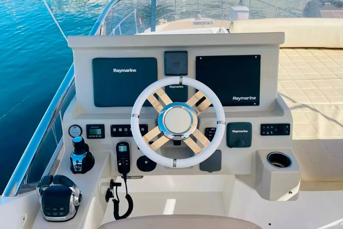 Яхта использовалась исключительно для семейных поездок в Средиземноморье и находилось под тщательным обслуживанием у официального дилера, что гарантирует его отличное состояние. Небольшая наработка на двигателях (925 часов). Элегантные интерьеры в итальянском стиле создают атмосферу уюта и стиля, делая эту яхту идеальным выбором для тех, кто ценит качество и комфорт. Яхта находится в Греции.
