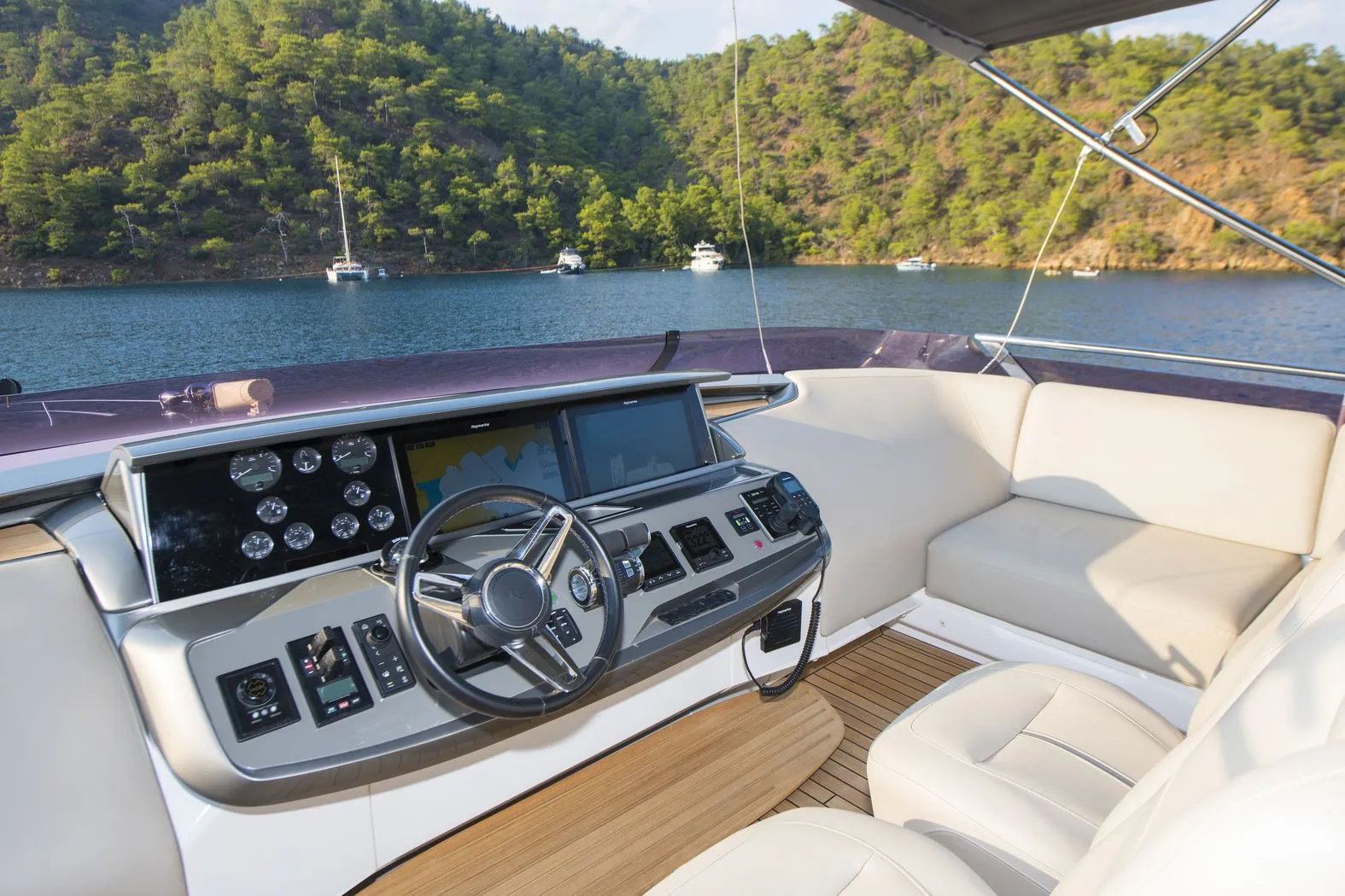 Эксклюзивное предложение – Princess S78 2021 года в Турции — уникальное сочетание роскоши, высоких технологий и исключительной производительности. Яхта находится в идеальном состоянии, благодаря регулярному техническому обслуживанию у официального дилера и бережному отношению со стороны единственного владельца. Наработка двигателей всего 300 моточасов.