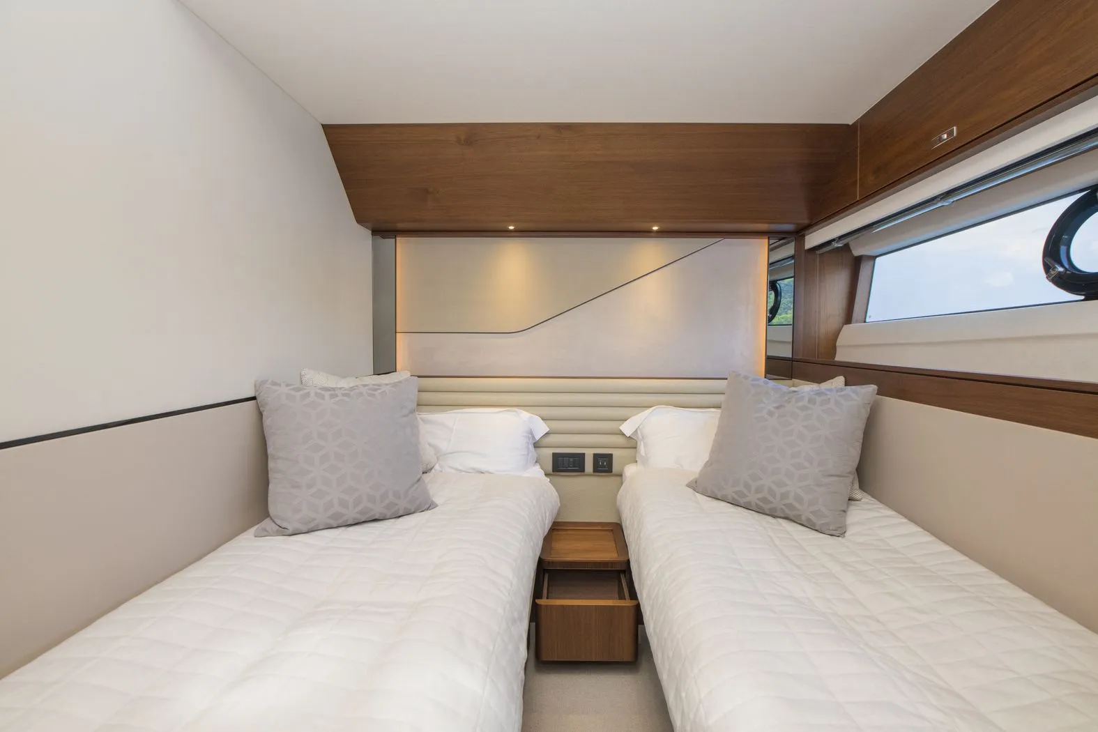 Просторные и светлые каюты способны с комфортом разместить до восьми гостей, а дополнительная кормовая каюта предназначена для дополнительного размещения гостей или 2-3 членов экипажа. Благодаря продуманной планировке и высокому уровню оснащения, эта яхта станет идеальным решением для длительных круизов в компании семьи или друзей.