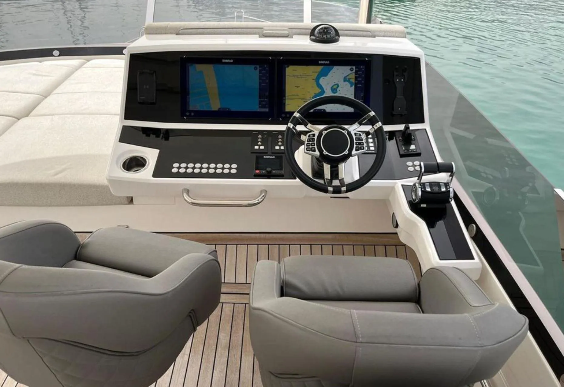 Среди уникальных особенностей Sunseeker Manhattan 68 выделяются гироскопическая система стабилизации, хардтоп на флайбридже с раздвижной центральной частью, полное тиковое покрытие открытых палуб и обширный набор бытовой и навигационной техники. Яхта тщательно обслужена и полностью готова к новому сезону. Предлагаются гибкие условия покупки, включая возможность оплаты в рублях.